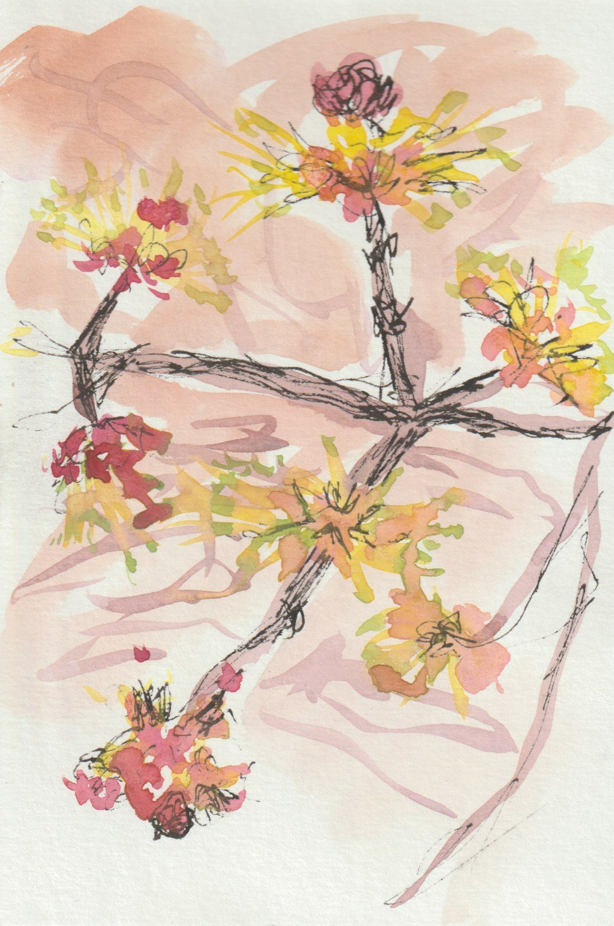 Painted “en plein air,” the small delicate blossoms of a red maple tree along the banks of Lums Pond in Glasgow, DE