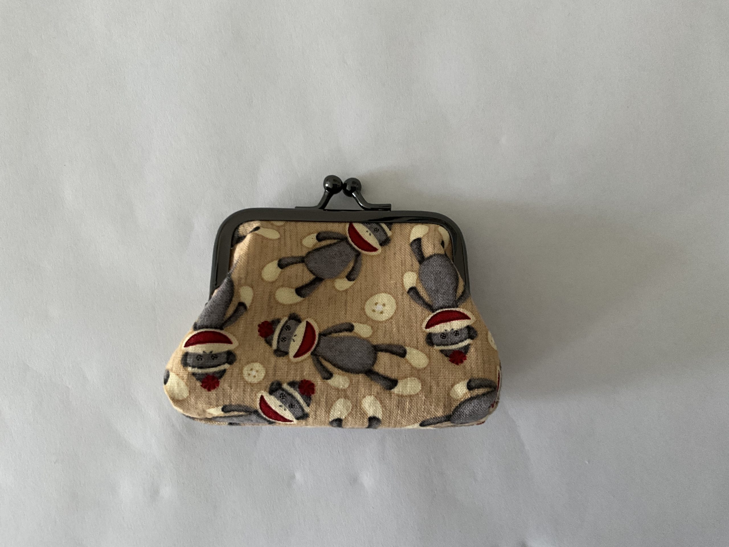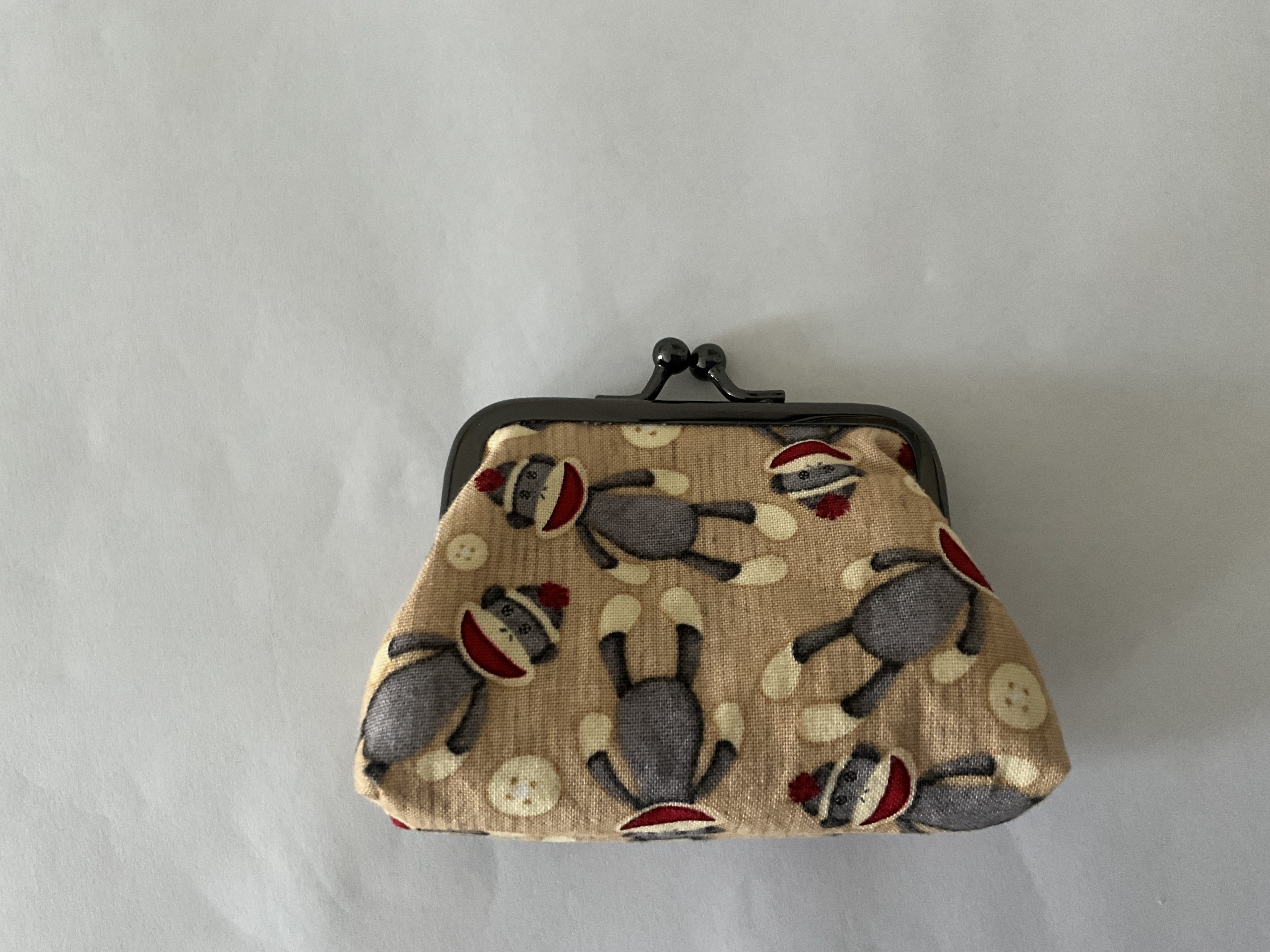 Small Case With Sock Monkey Design for Coins, Earbuds, Small Hair Clips, Etc.