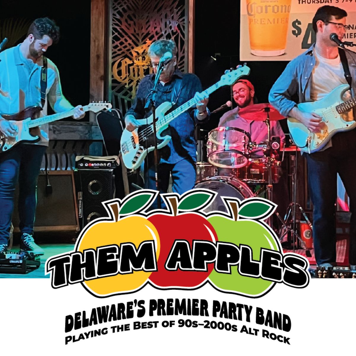 Them Apples are Delaware's go-to band for high-energy throwback rock. This four-piece channels the golden era of 90s and 2000s alt-rock with spot-on covers of Weezer, Green Day, Third Eye Blind, Blink-182, Oasis, Foo Fighters, and the Red Hot Chili Peppers.
